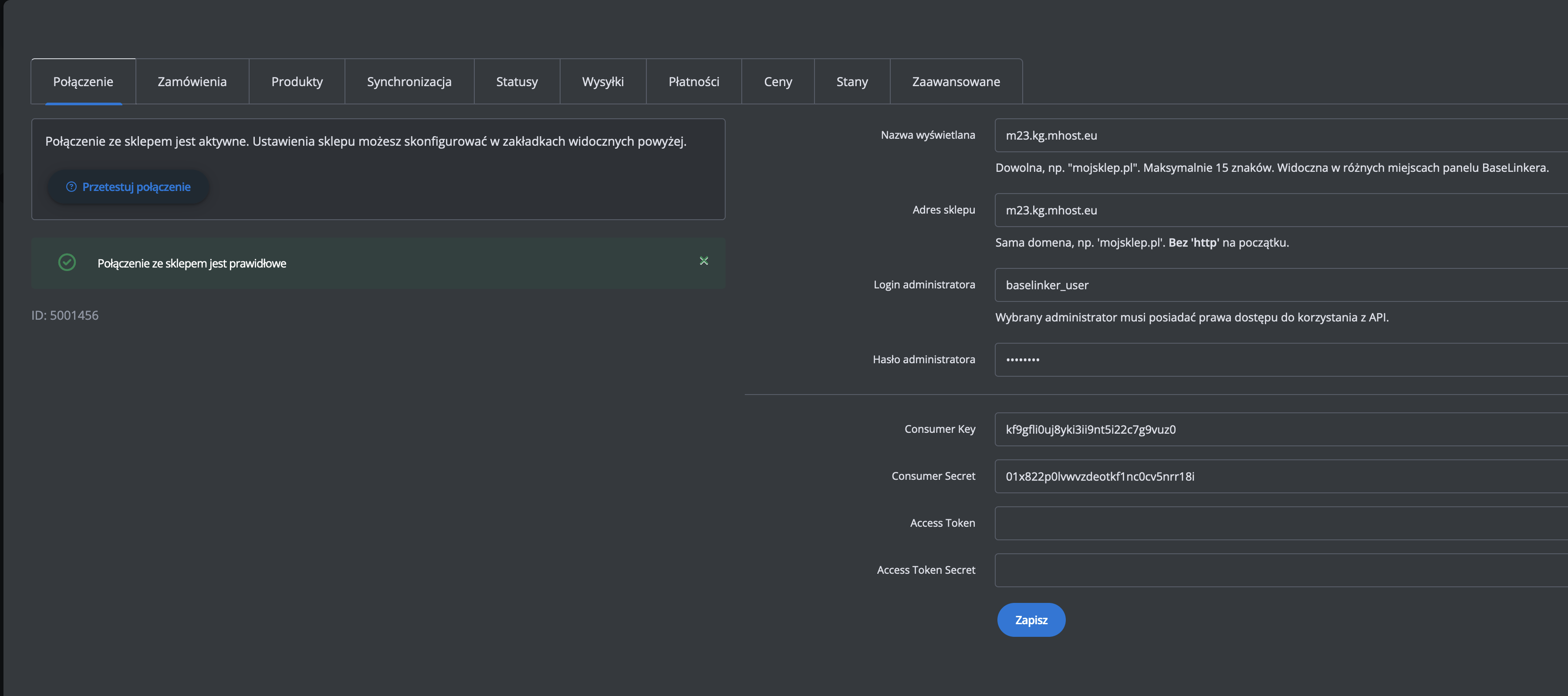 - Możesz teraz przejść do zaawansowanej konfiguracji poszczególnych elementów integracji w panelu baselinker.