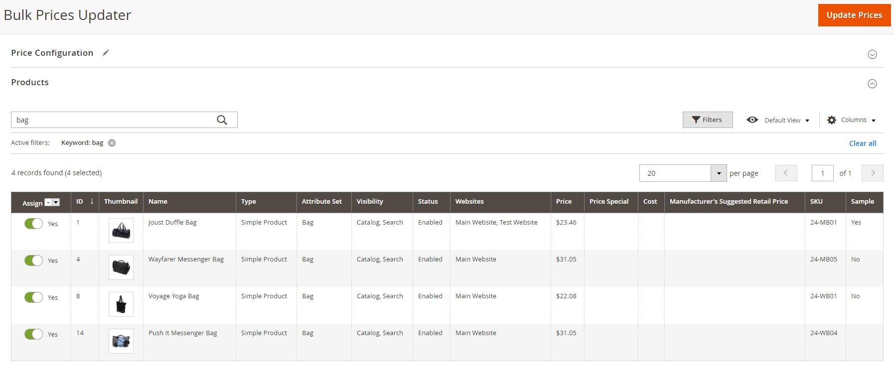 Na koniec zatwierdź zmiany przyciskiem Update Prices.